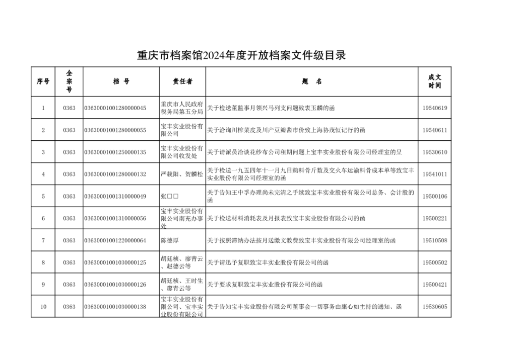 重庆市档案馆关于开放部分馆藏档案的公告