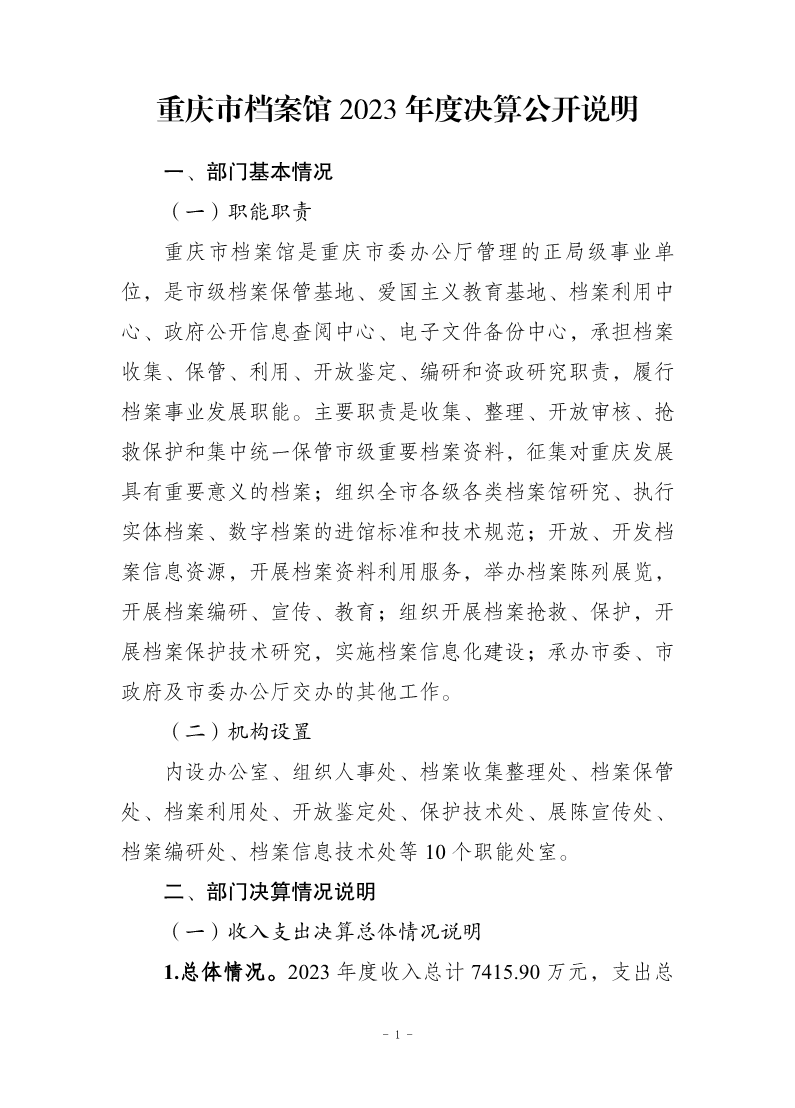 重庆市档案馆2023年度决算公开说明