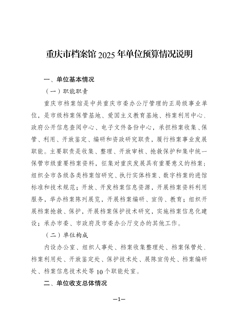 重庆市档案馆2025年单位预算情况说明
