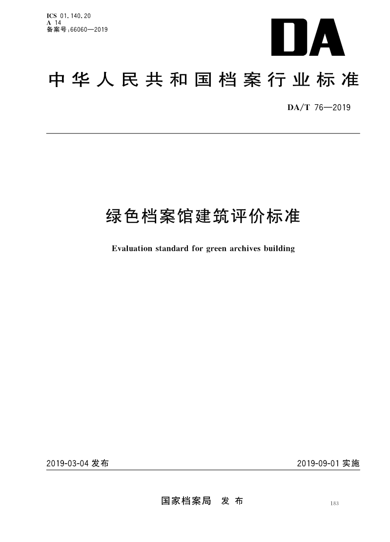 DAT 76—2019 绿色档案馆建筑评价标准