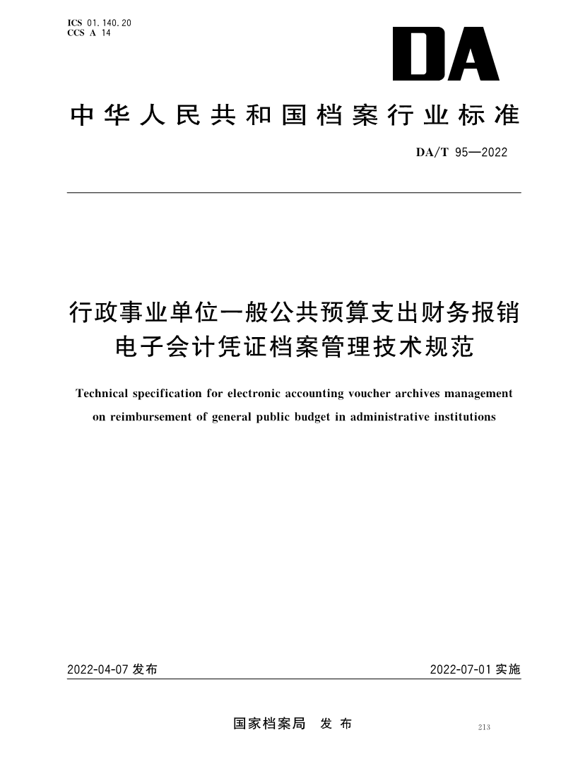 行政事业单位一般公共预算支出财务报销电子会计凭证档案管理技术规范