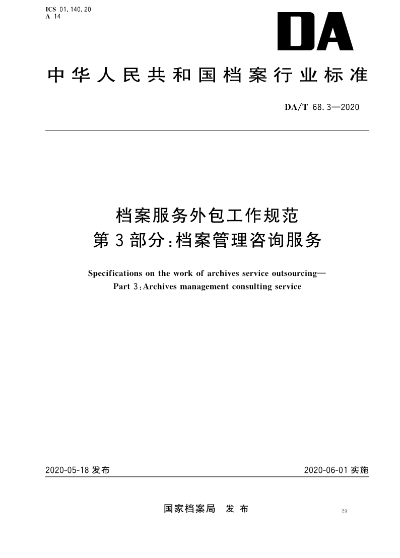 DAT 68.3-2020 档案服务外包工作规范 第3部分:档案管理咨询服务