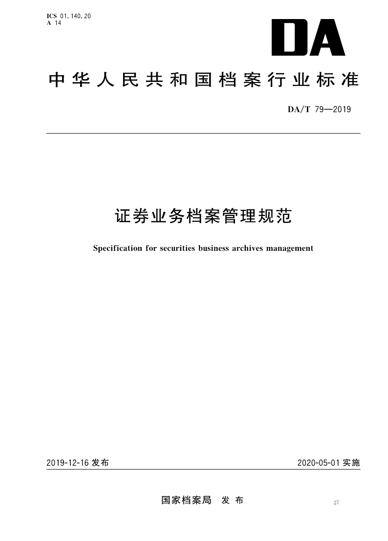 DAT 79—2019 证券业务档案管理规范