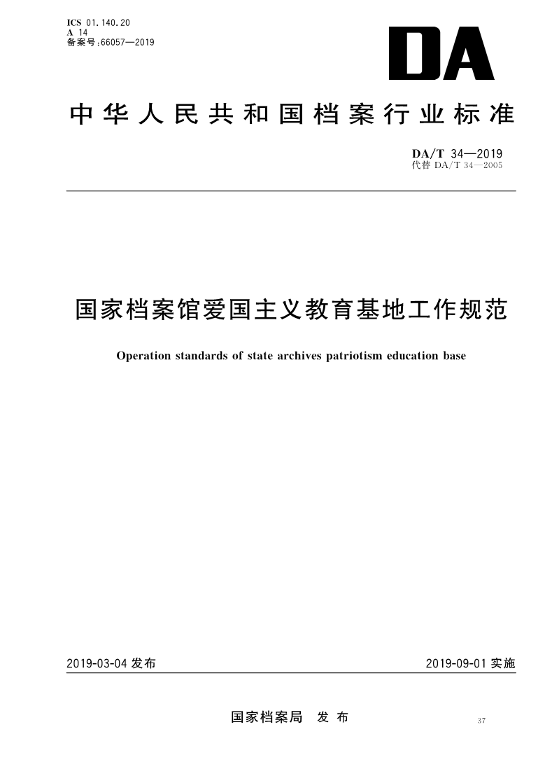 DAT 34—2019 国家档案馆爱国主义教育基地工作规范