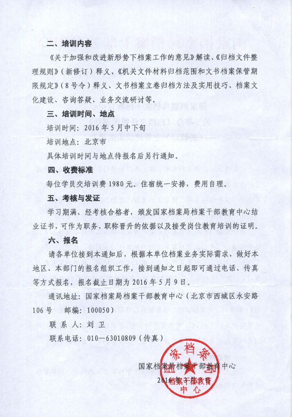国家档案局档案干部教育中心关于举办《归档文件整理规则》(新修订)宣贯培训班的通知